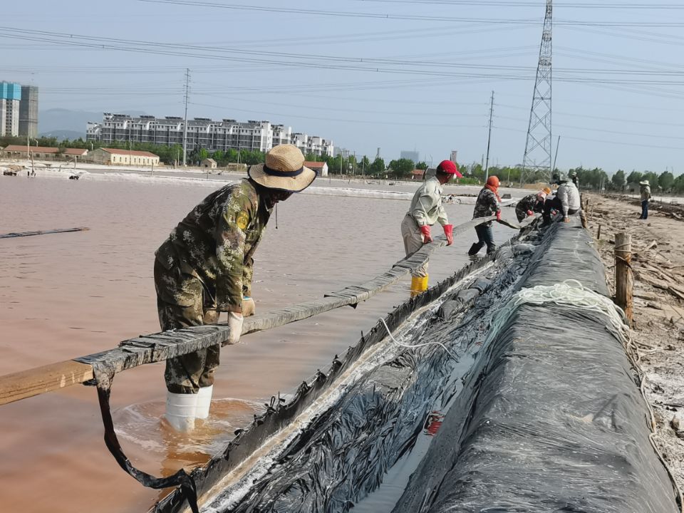 礦鹽生產(chǎn)班組提前謀劃原鹽集運(yùn)前的準(zhǔn)備工作。2022年秋扒鹽已經(jīng)順利落下帷幕,工人們利用收鹽后的空隙對鹽池板進(jìn)行修整、整理收放系統(tǒng)以及將扒鹽機(jī)械進(jìn)行保養(yǎng)入庫等等。同時,修整運(yùn)鹽主干道,地基較軟處以鋼板鋪墊,確保運(yùn)鹽車輛安全通過。排查廩基周圍高低壓線路,在作業(yè)的同時堅守安全生產(chǎn)底線。等待天氣轉(zhuǎn)好,將立即進(jìn)行原鹽集運(yùn)。