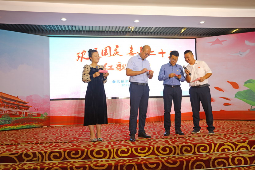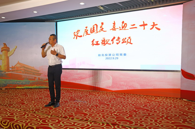 為慶祝新中國(guó)成立73周年,9月29日下午,臺(tái)北投資公司舉辦了“歡度國(guó)慶·喜迎二十大”紅歌傳頌會(huì),來自各直屬單位和機(jī)關(guān)廣大員工匯聚一堂,用最甜美的聲音歌唱祖國(guó)、用最真摯的詩(shī)詞贊頌祖國(guó),現(xiàn)場(chǎng)亮點(diǎn)頻現(xiàn)、精彩紛呈。