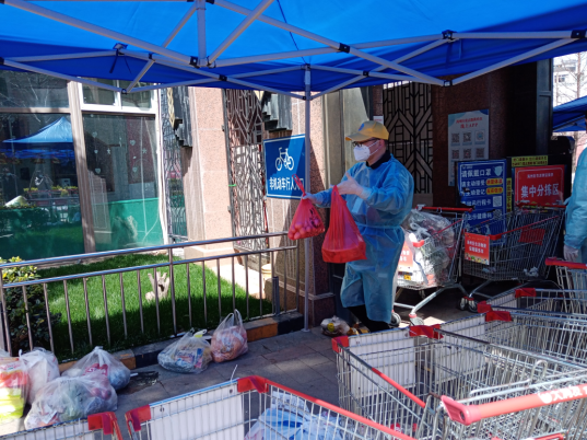 “大爺,您好,拿什么菜?”早上8點,海州防疫臨時黨支部的江海凌同志開始一天的志愿服務(wù)。不過,他今天“改行”了,不再是信息采集員,而是化身鄰居菜籃子的“守護者”。