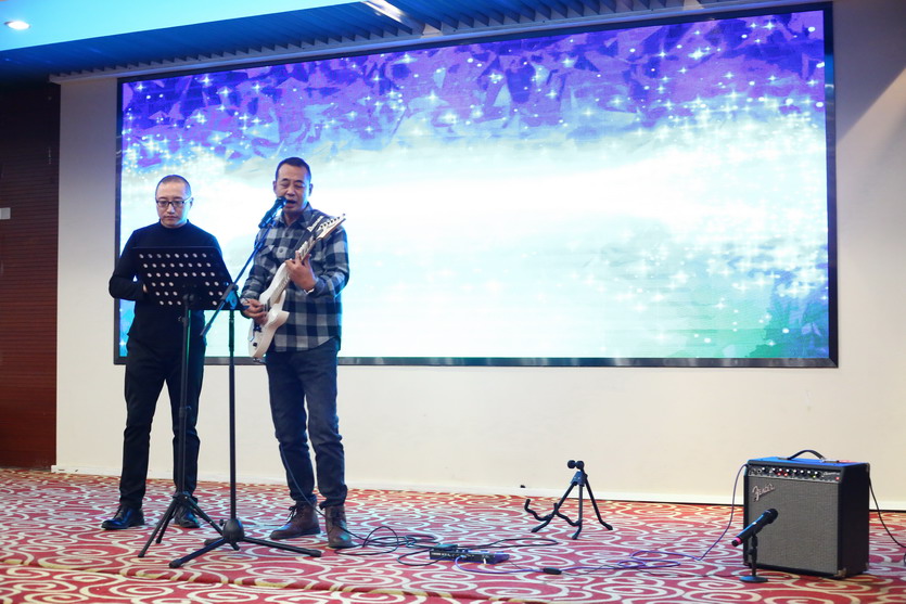 聯(lián)歡會節(jié)目豐富多彩,有獨唱、小合唱、魔術、游戲等。精彩的表演贏得了全場陣陣歡聲笑語,雖然表演很業(yè)余,但大家各個精神抖擻,充分展示了公司員工的蓬勃朝氣和奮發(fā)進取的精神。在熱烈氛圍的感染下,公司領導也紛紛上臺表演節(jié)目為晚會助興,楊善革《我愛你塞北的雪》對新年的祝福和期盼,表達了迎新年的喜悅心情。公司黨委書記、董事長、總經理王德志一曲《南泥灣》更是唱出了公司全體員工熱愛祖國,熱愛企業(yè),立志艱苦奮斗、自力更生,決戰(zhàn)2022,打贏臺北保衛(wèi)戰(zhàn),再創(chuàng)臺北新輝煌的決心。