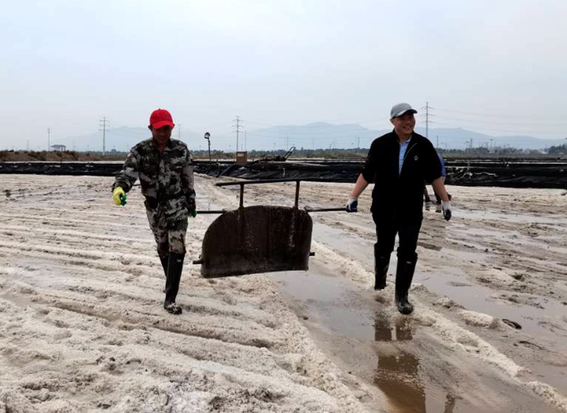 厲兵秣馬,鏖戰(zhàn)秋扒鹽。“同志們,這將是我們臺(tái)北地區(qū)1300年鹽業(yè)史上最后,也是時(shí)間最緊急、任務(wù)最繁重的一次秋扒鹽了”正是因?yàn)槭姑诩纾覀兏峦鼻啊9救w黨員干部爭(zhēng)分奪秒扒鹽、竭盡全力制鹵,奮戰(zhàn)100天,全力沖刺“開(kāi)新局、奪首勝”目標(biāo)任務(wù)。連云港堿廠關(guān)停在即,鹽鈣聯(lián)產(chǎn)項(xiàng)目終結(jié),原鹽搶收進(jìn)入到了大決戰(zhàn)時(shí)刻。為此,公司上下,從黨委班子到普通辦事員,從直屬單位到公司機(jī)關(guān),全部動(dòng)員起來(lái),9月28日召開(kāi)了戰(zhàn)前動(dòng)員大會(huì)并進(jìn)行秋扒崗前培訓(xùn)。10月2日,天時(shí)地利人和,夜里9時(shí)10分,隨著機(jī)器一聲轟鳴,扒鹽機(jī)組輸鹽大架銀瀑飛濺,大八組、西灘雙向聯(lián)動(dòng),人工扒鹽、機(jī)械扒鹽齊頭并進(jìn)。公司領(lǐng)導(dǎo)與廣大職工想在一起、干在一起,上下齊心、爭(zhēng)分奪秒,擼起袖子、甩開(kāi)膀子,在鹽池間盡情地?fù)]灑著汗水,確保勞動(dòng)成果顆粒歸倉(cāng),誓奪原鹽收官戰(zhàn)全勝。截止6日晚,公司 排放鈣液6000方,扒鹽3000余噸。