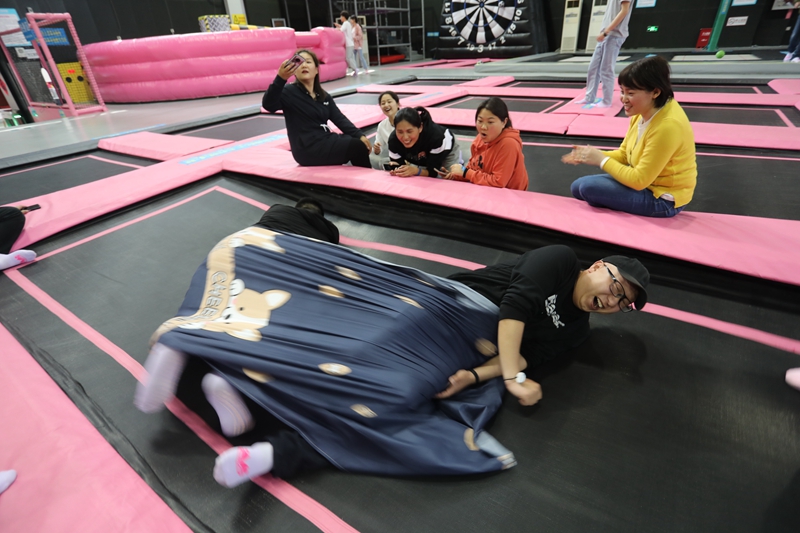 團(tuán)建活動(dòng)中,兩個(gè)隊(duì)伍的成員通過(guò)頭腦風(fēng)暴為自己的隊(duì)伍分別取名為“黛玉隊(duì)”和“寶釵隊(duì)”,分別由看起來(lái)比較柔軟實(shí)際也很柔軟的王茜和看起來(lái)很有力量,實(shí)際也很有力量的宋文靜帶領(lǐng)。大家喊出來(lái)鼓舞人心的口號(hào),簡(jiǎn)單的取名、口號(hào)環(huán)節(jié)起到了破冰的作用,瞬間拉近了隊(duì)員之間的距離。拓展訓(xùn)練中,青年們共同配合,迎難而上,大膽挑戰(zhàn)自我,“重走長(zhǎng)征路”、“黨史60秒”、“四平八穩(wěn)”等緊張激烈的對(duì)決中,每個(gè)團(tuán)隊(duì)齊心協(xié)力攻克了一個(gè)個(gè)最初認(rèn)為不可能完成的項(xiàng)目,共同分享了成功的喜悅和挑戰(zhàn)的激情,充分地體會(huì)到了團(tuán)隊(duì)信任、合作共贏、換位思考、永不言敗的重要意義,圓滿完成了拓展訓(xùn)練任務(wù)。