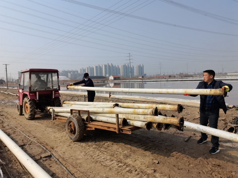 東灘現(xiàn)有長鹽格塊10塊,共計600公畝,預(yù)計出鹽量6000噸。為了在征收前,實現(xiàn)公司利益最大化,鹽池里不留一粒原鹽,海州灣公司多次召開生產(chǎn)骨干會議,研究部署,合理安排扒鹽時間,決定先人工扒東灘二班4塊鹽池,余下6塊鹽池利用春季有利天時繼續(xù)長鹽,在土地征收前的最后一個月,突擊搶扒,做到顆粒歸倉。本次東灘預(yù)計扒鹽時長一周,出鹽量2500噸。