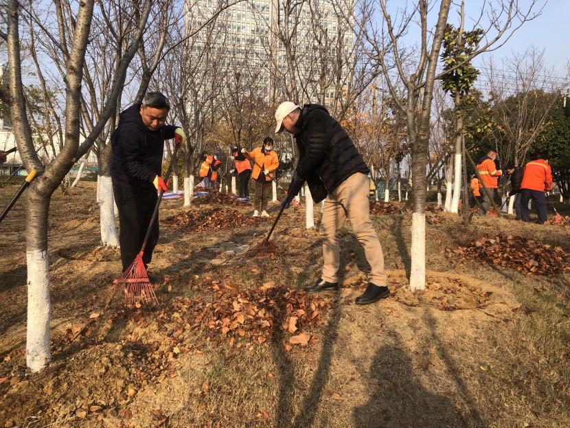 隨著冷空氣的悄然侵襲,天氣變得既寒冷又干燥,樹葉落滿了地面,不僅給居民的出行帶來不便,還影響了轄區(qū)環(huán)境的整潔。為進一步踐行勞動精神,更好地發(fā)揮臺北投資公司機關(guān)黨支部戰(zhàn)斗堡壘作用和黨員先鋒模范作用,切實保障綠化分公司創(chuàng)智綠園“冬準(zhǔn)”工作。12月6日下午,機關(guān)黨支部聯(lián)合綠化分公司黨支部在創(chuàng)智綠園開展“踐行勞動精神,集中清除落葉”突擊勞動活動。
