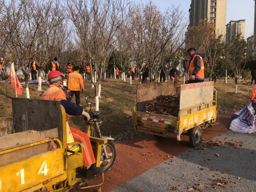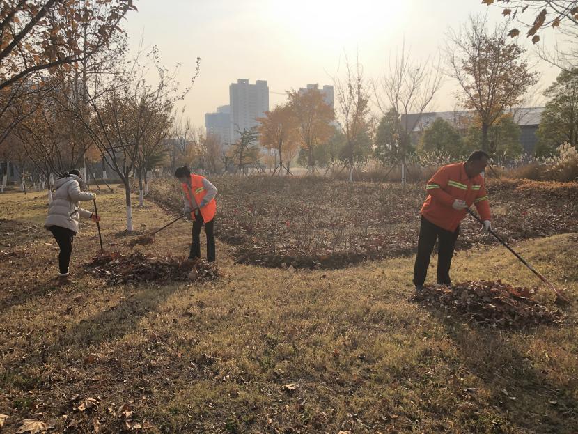 活動現(xiàn)場,黨員同志、積極分子分為兩撥,分別從創(chuàng)智綠園北門和東門對園內(nèi)雜草落葉進行清除。在戴好手套,做好防護、防凍措施的同時,紛紛拿著掃帚、耙子等工具,統(tǒng)籌安排、分工勞作,齊心協(xié)力,有的用掃帚掃落葉、有的用袋子裝落葉、有的用耙子摟落葉……大家忙得熱火朝天,充分發(fā)揚不怕臟、不怕苦、不怕累的黨員先鋒本色,創(chuàng)智綠園內(nèi)處處是同志們清理雜草落葉的身影,構(gòu)成了一道亮麗的風(fēng)景線,經(jīng)過一個多小時的辛勤勞動,兩撥隊伍順利“會師”,沿途雜草落葉被清理得干干凈凈,公園環(huán)境也得到明顯改善。
