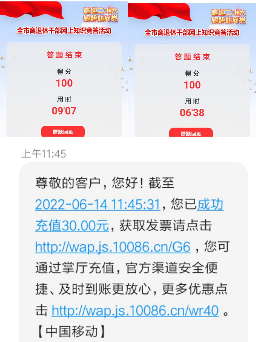 猴嘴辦事處對(duì)此次答題活動(dòng)高度重視,動(dòng)員猴嘴辦事處人員積極參與答題活動(dòng),并引導(dǎo)鼓勵(lì)離休老干部積極參加答題活動(dòng)。經(jīng)過(guò)七天的連續(xù)網(wǎng)上奮戰(zhàn)答題,獲獎(jiǎng)評(píng)選結(jié)果于6月13日揭曉,猴嘴辦事處張克娟同志喜進(jìn)第一周獲獎(jiǎng)人員名單,并且已收到了30元的話費(fèi)充值獎(jiǎng)勵(lì)。獲獎(jiǎng)本人表示,將把此次競(jìng)答獎(jiǎng)勵(lì)轉(zhuǎn)化為學(xué)習(xí)的再生動(dòng)力,再接再厲,以學(xué)促行,推動(dòng)服務(wù)能力再提升。