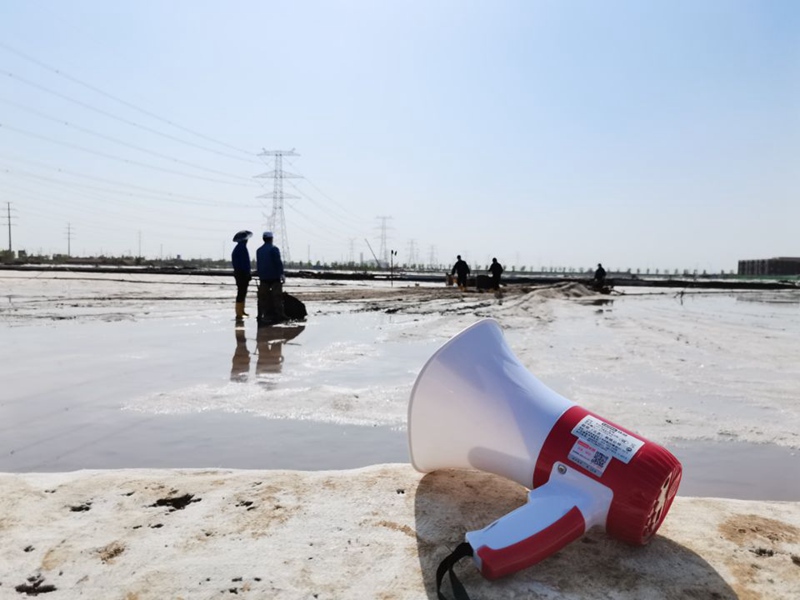 “小喇叭”通過藍牙連接“學習強國”,每天進行三次播報,根據(jù)扒鹽白班、小夜班、大夜班三個班次輪流播報,每次播報30分鐘,讓廣大職工既不耽誤工作又能聽見黨的故事,學習黨的歷史,交流黨的思想,真正讓黨的好聲音在灘頭池間落地生根,深受廣大職工一致好評!