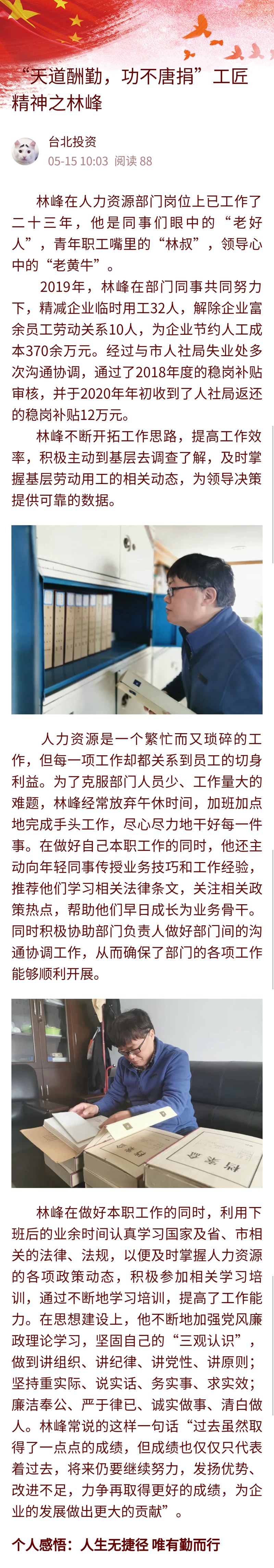 【匠心筑夢 實(shí)干興企】“天道酬勤,功不唐捐”工匠精神之林峰