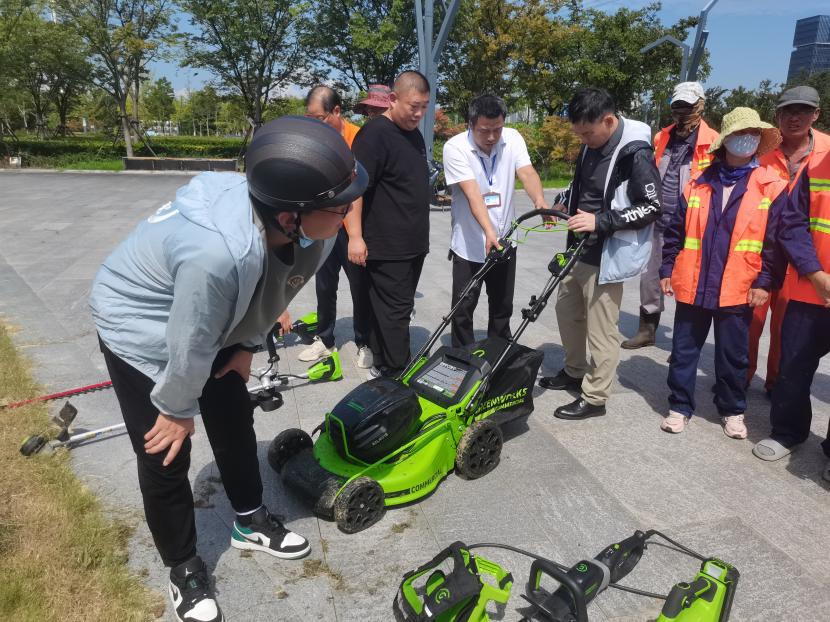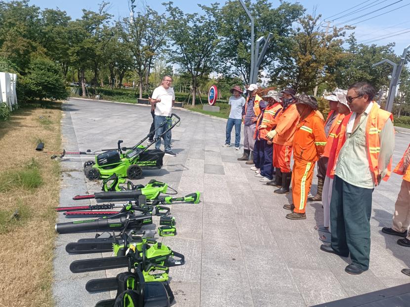 8月16日,創(chuàng)智綠園內(nèi)綠意盎然、生機(jī)勃勃。為積極響應(yīng)國家環(huán)保政策,提升綠化養(yǎng)護(hù)效率與質(zhì)量,綜合管理部精心策劃并組織開展了“綠化新型電動(dòng)機(jī)械展示與試用”活動(dòng)。本次活動(dòng)特別邀請(qǐng)了綠化分公司和益豐園林分公司的專業(yè)團(tuán)隊(duì)參與,共同見證了電動(dòng)綠籬機(jī)、電動(dòng)割灌機(jī)、電動(dòng)草坪機(jī)、電動(dòng)鼓風(fēng)機(jī)及電動(dòng)鏈鋸等先進(jìn)設(shè)備的風(fēng)采。