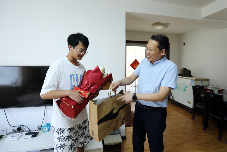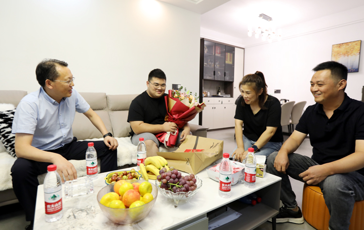 ? ? ? 投資公司黨委副書記、工會主席劉剛一行來到滕士春、侍作青、顏廷周等職工家中,向“金榜題名”12名職工子女送去祝福與慰問。每到一處,劉剛親切詢問學生學習情況,并代表公司黨政送上書包、鮮花與“祝學金”。鼓勵學生要把組織的關(guān)愛,轉(zhuǎn)化為勤奮學習、砥礪成才、感恩上進的強大動力,勉勵學子們要勇往直前,奮發(fā)圖強,學業(yè)有成,實現(xiàn)自身價值,將來以更優(yōu)異的成績回報父母,回報企業(yè),奉獻社會。