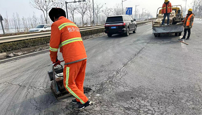 市政維護“有龍威”。大年初二,市政值班人員在日常巡視中發(fā)現(xiàn)港前大道至蘇海路段出現(xiàn)3處道路坑塘,造成極大的道路交通安全隱患。值守工作人員第一時間帶好瀝青冷補料,切割機和平板振動夯等工具第一時間到崗到位。擺好安全警示錐、路面切割、補料、修復……大家齊動手,配合和諧,連續(xù)作戰(zhàn)2個多小時,高質(zhì)高效將道路坑塘修補到位,確保春節(jié)期間道路交通安全。